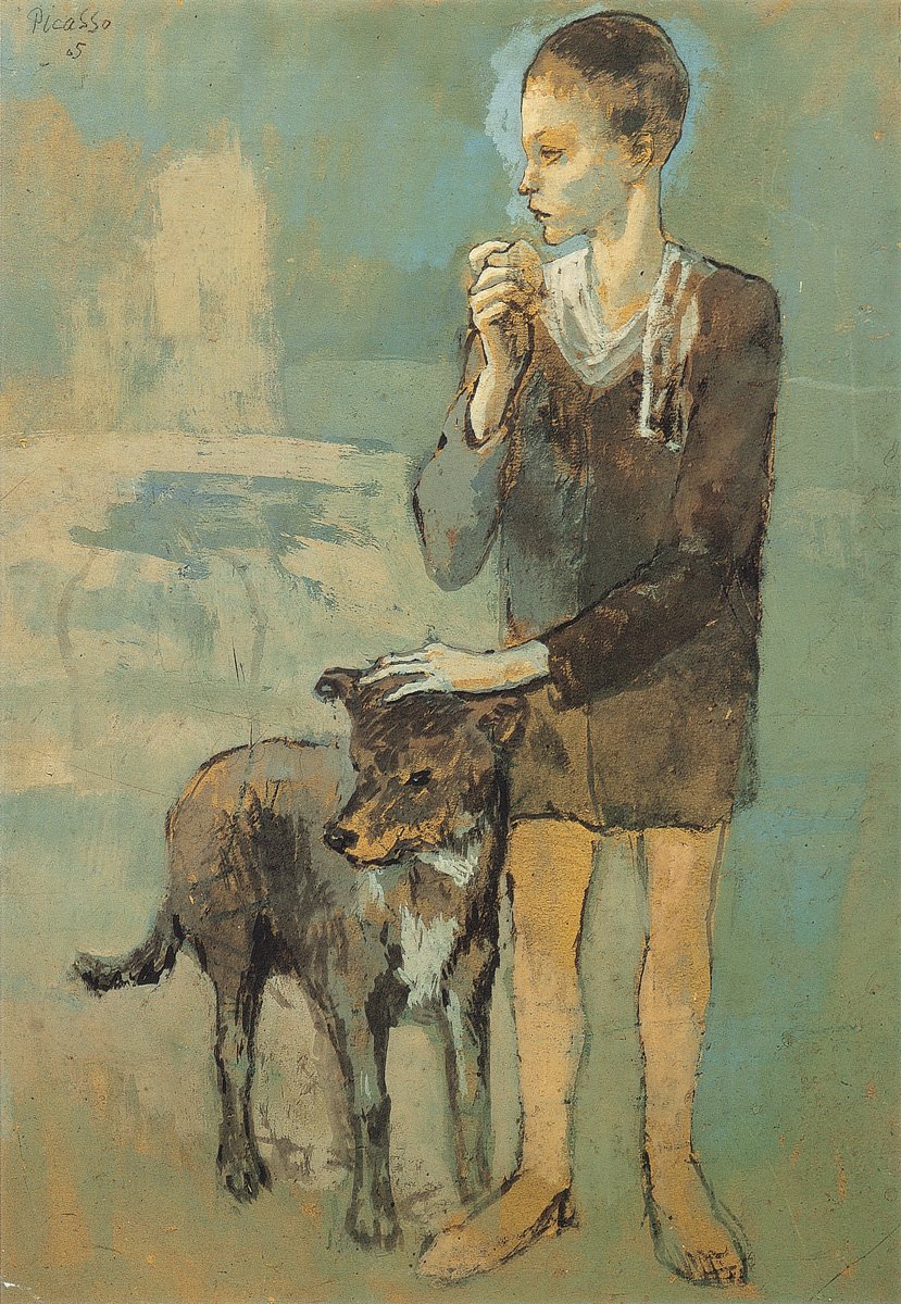 Etwa um 1900, zur Entstehungszeit des frühesten unter den Bildern der Sammlung, lagen für Picasso seine spanische Kindheit und die Lehrjahre bereits weit zurück. Dennoch lohnt es sich, einige Schlüsselerlebnisse in seiner Kindheit näher zu betrachten. Zuallererst muss Malaga erwähnt werden, hier hat der am 25. Oktober 1881 geborene Pablo Ruiz, der künftige Picasso, die ersten zehn Jahre seines Lebens verbracht. Obwohl er diese Stadt an der andalusischen Küste des Mittelmeeres nie dargestellt hat, war gerade Malaga die Wiege seines Geistes, die Landschaft seiner Kindheit, in der viele Themen und Bilder seines reifen Schaffens wurzeln. Im Stadtmuseum von Malaga sah er zum ersten Mal den antiken Herkules und auf der Placa de Toros Stierkämpfe, und zuhause die gurrenden Tauben, die seinem Vater, dem „Maler von Bildern für Esszimmer“, wie er ihn später selbst nannte, als Modell dienten. Picasso zeichnet das alles, und mit etwa acht Jahren nimmt er bereits Pinsel und Ölfarben in die Hand, um eine Corrida darzustellen. Der Vater erlaubt ihm, auf seinen Taubenbildern die Vogelfüße zu zeichnen, denn Pablo macht das gut und kennerhaft. Und als die Zeit gekommen war, die Schule zu besuchen, wollte er sich auf keinen Fall von seiner Lieblingstaube trennen: Er kam in die Klasse und stellte den Käfig mit dem Vogel auf die Bank… Die Schule als den Ort, wo man sich unterzuordnen hatte, hasste Pablo vom ersten Tag an und widersetzte sich ihr. Auch in Zukunft wird er gegen alles Einspruch erheben, was nach Schule riecht, was sich an der Eigenart und der individuellen Freiheit vergreift, allgemeine Regeln vorschreibt, Normen bestimmt und Auffassungen aufdrängt. Er wird sich nie vorgegebenen Bedingungen anpassen, seinen Überzeugungen abtrünnig werden oder, um es in psychologischen Begriffen auszudrücken, das Lustprinzip dem Realitätsprinzip unterordnen.
