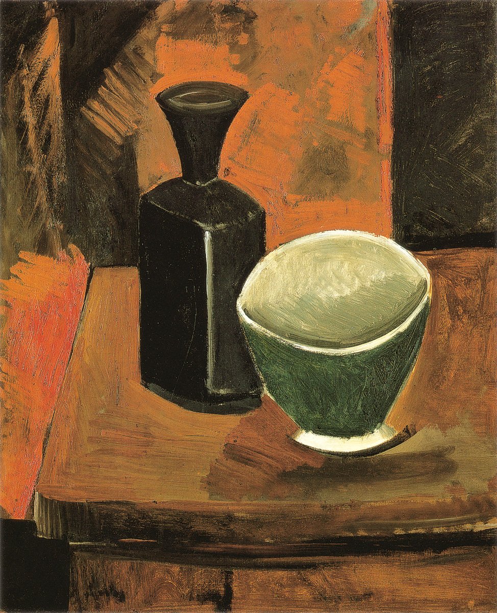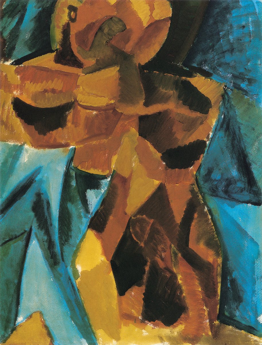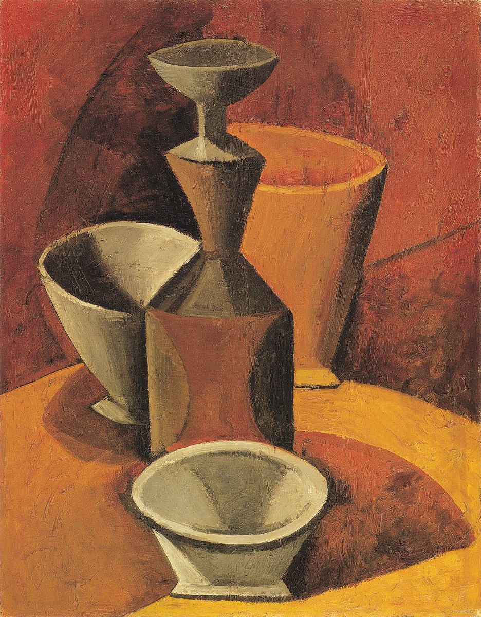 Noch früher wurde auch Tschulkow davon überrascht: „Bei Picasso gibt es ein Stillleben — Tongefäße und eine große bauchige Flasche auf dem Rand des Tisches, der in eine Ecke geschoben ist. Die asketische Strenge der Farbe, die äußerste Einfachheit der Zeichnung, nachdrückliche Abwesenheit der Vorsätzlichkeit und zugleich die unwahrscheinliche, erstaunliche Ausdruckskraft der Form und hinter der Form eine außergewöhnliche Tragweite der Erlebnisse, die dieser genial gefundenen Form vollkommen adäquat sind! Ich kenne kein schrecklicheres Bild als dieses Stillleben Picassos.“[124] Ist es nicht erstaunlich, dass all das von einer Kunst gesagt wird, die überall und noch lange danach ihrem Wesen nach als formale betrachtet werden wird, als ein rein plastisches Phänomen? Diese Kunst wurde historisch mit dem Begriff „Kubismus“ verbunden, und bis heute ist die Trägheit des formalen Herangehens ihr gegenüber noch nicht überwunden. Aber in eben diesen Jahren sagte Picasso zu Tugendhold: „Die Flasche auf dem Tisch ist genauso bedeutsam wie ein religiöses Bild.“