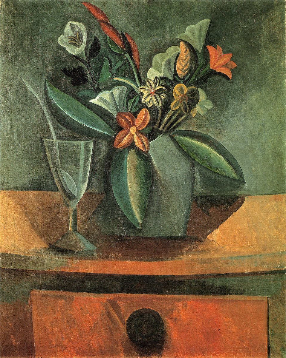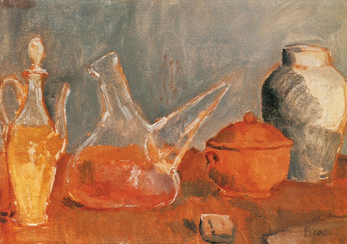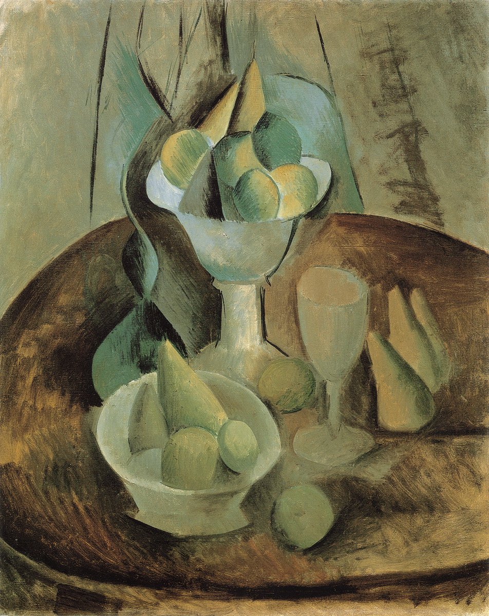 Noch früher wurde auch Tschulkow davon überrascht: „Bei Picasso gibt es ein Stillleben — Tongefäße und eine große bauchige Flasche auf dem Rand des Tisches, der in eine Ecke geschoben ist. Die asketische Strenge der Farbe, die äußerste Einfachheit der Zeichnung, nachdrückliche Abwesenheit der Vorsätzlichkeit und zugleich die unwahrscheinliche, erstaunliche Ausdruckskraft der Form und hinter der Form eine außergewöhnliche Tragweite der Erlebnisse, die dieser genial gefundenen Form vollkommen adäquat sind! Ich kenne kein schrecklicheres Bild als dieses Stillleben Picassos.“[124] Ist es nicht erstaunlich, dass all das von einer Kunst gesagt wird, die überall und noch lange danach ihrem Wesen nach als formale betrachtet werden wird, als ein rein plastisches Phänomen? Diese Kunst wurde historisch mit dem Begriff „Kubismus“ verbunden, und bis heute ist die Trägheit des formalen Herangehens ihr gegenüber noch nicht überwunden. Aber in eben diesen Jahren sagte Picasso zu Tugendhold: „Die Flasche auf dem Tisch ist genauso bedeutsam wie ein religiöses Bild.“