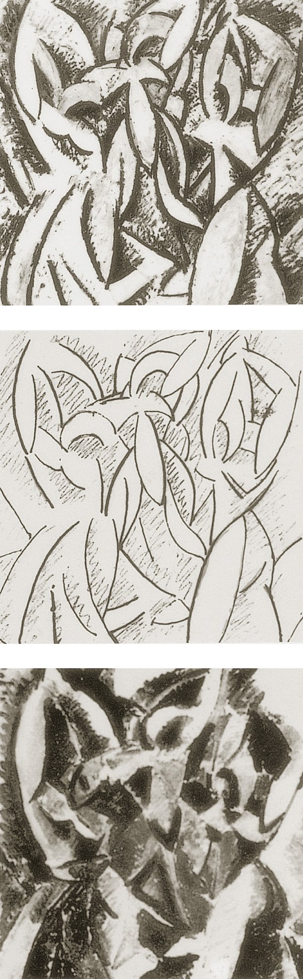 Und noch ein Beispiel. Nichts von den sogenannten Ingresschen Zeichnungen der Jahre 1915-1917 wissend, lange vor dem Beginn des sogenannten Neoklassizismus der 20er Jahre, fern von Paris, vermutet Innokenti Aksjonow, nein — prophezeit er: „Beabsichtigt dieser Porträtist zahlloser Violinen, nachdem er seine unvorsichtigen Begleiter in den Papier- und Blechdschungel geführt hat, nicht durch eine unverhohlene Synthese eines Realismus auf höherer Ebene zu ihnen zurückzukehren?“[133] Als hätte er es geahnt... Als Epigraph zu seinem Buch wählte Aksjonow die Worte Grigori Nisskis: „Die einen verstehen Gott als Feuer, die anderen als Licht.“ Für ihn selbst war Picasso nicht das Höllenfeuer, sondern die Flamme des Schöpfertums. „Aber“, schreibt Innokenti Aksjonow, „wir stimmen auch hier mit ihm überein, jenes Feuer ist vernünftig und der Ursprung der Weltordnung.“