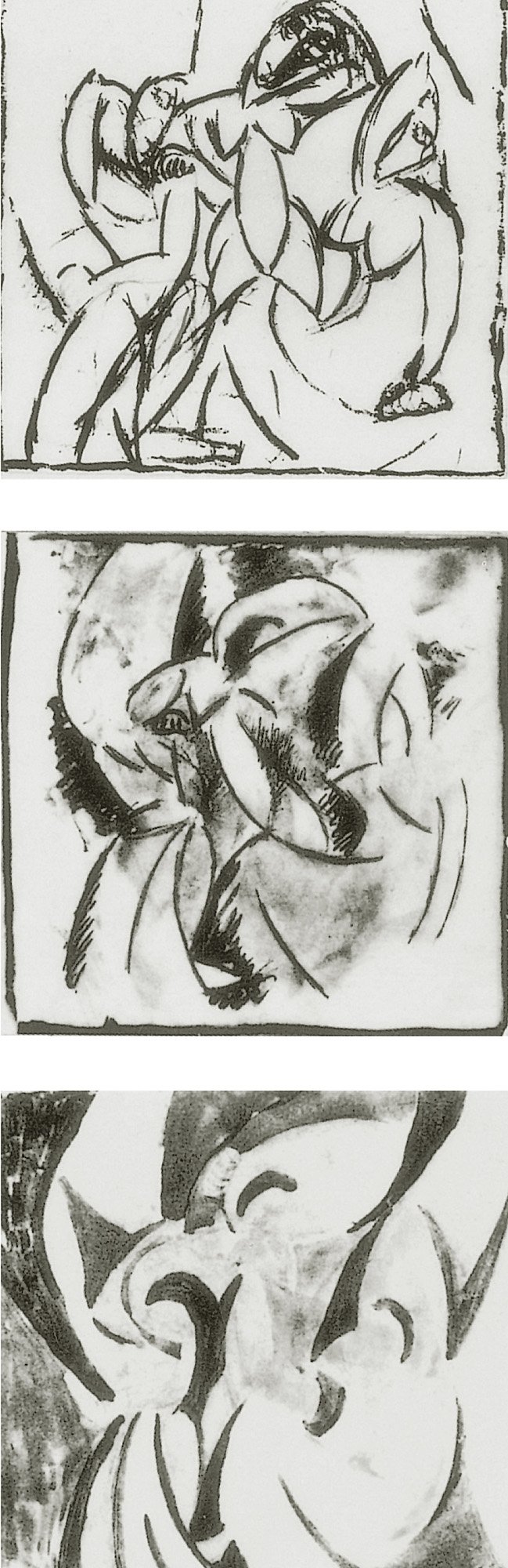 Aber er zeichnet nicht nur in der Klasse, sondern auch zu Hause, zeichnet die ganze Zeit, egal worauf. Das sind Bildnisse von der Familie, Alltagsszenen, romantische Sujets, Tiere.