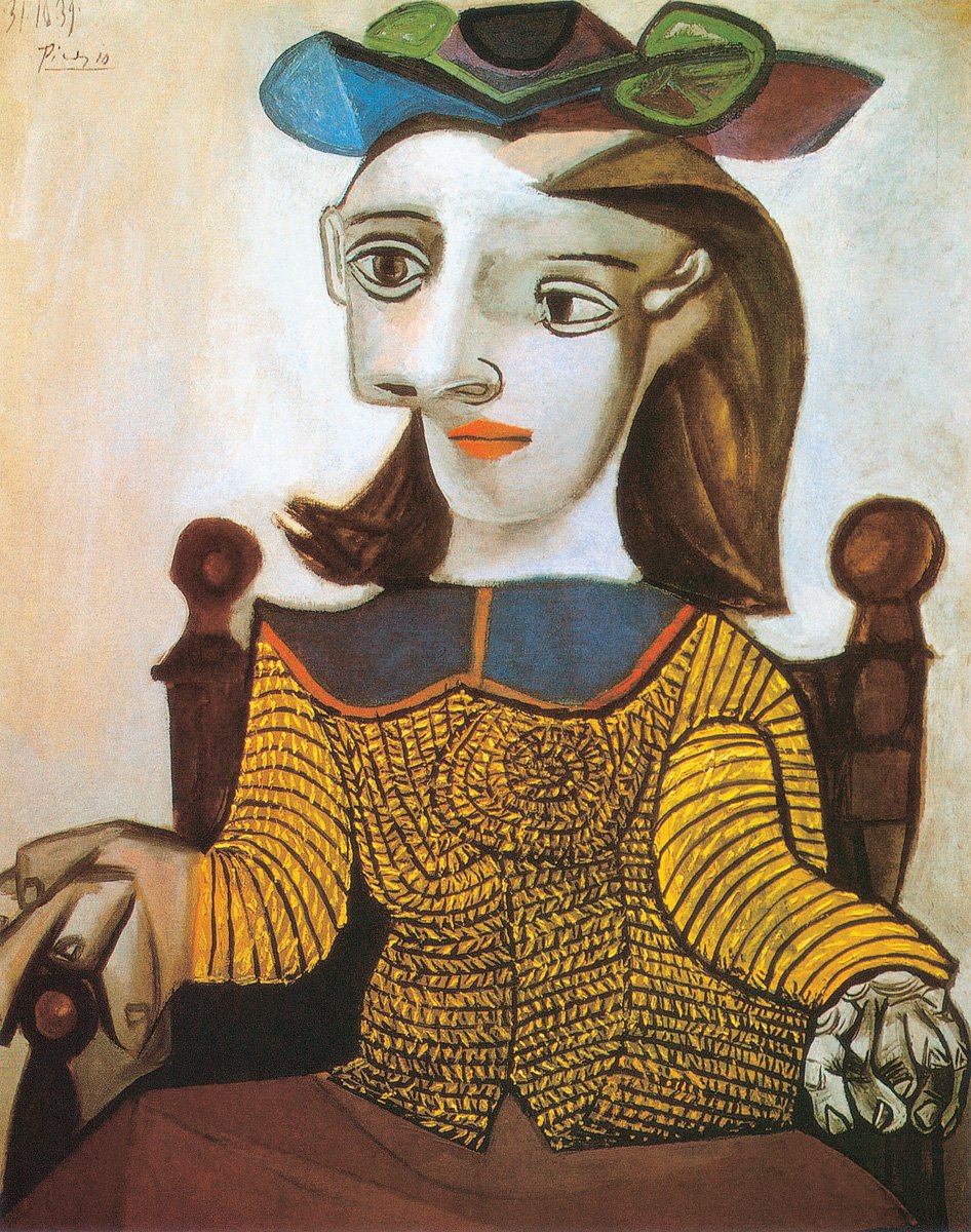 Und wirklich, hier wird ja von den künftigen surrealistischen Montagen und auch von den Skulpturen-Assemblagen Picassos der dreißiger bis fünfziger Jahre gesprochen. Da lesen wir über die optische, d. h. reale Natur der sogenannten Deformationen im Kubismus: „Picasso betrachtet seine Gegenstände aus nächster Nähe, so nah, wie man das Gesicht der Geliebten ansieht.“[132] Hat der Maler die Richtigkeit dieser Worte durch seine Frauenporträts der 30er Jahre nicht selbst bestätigt?