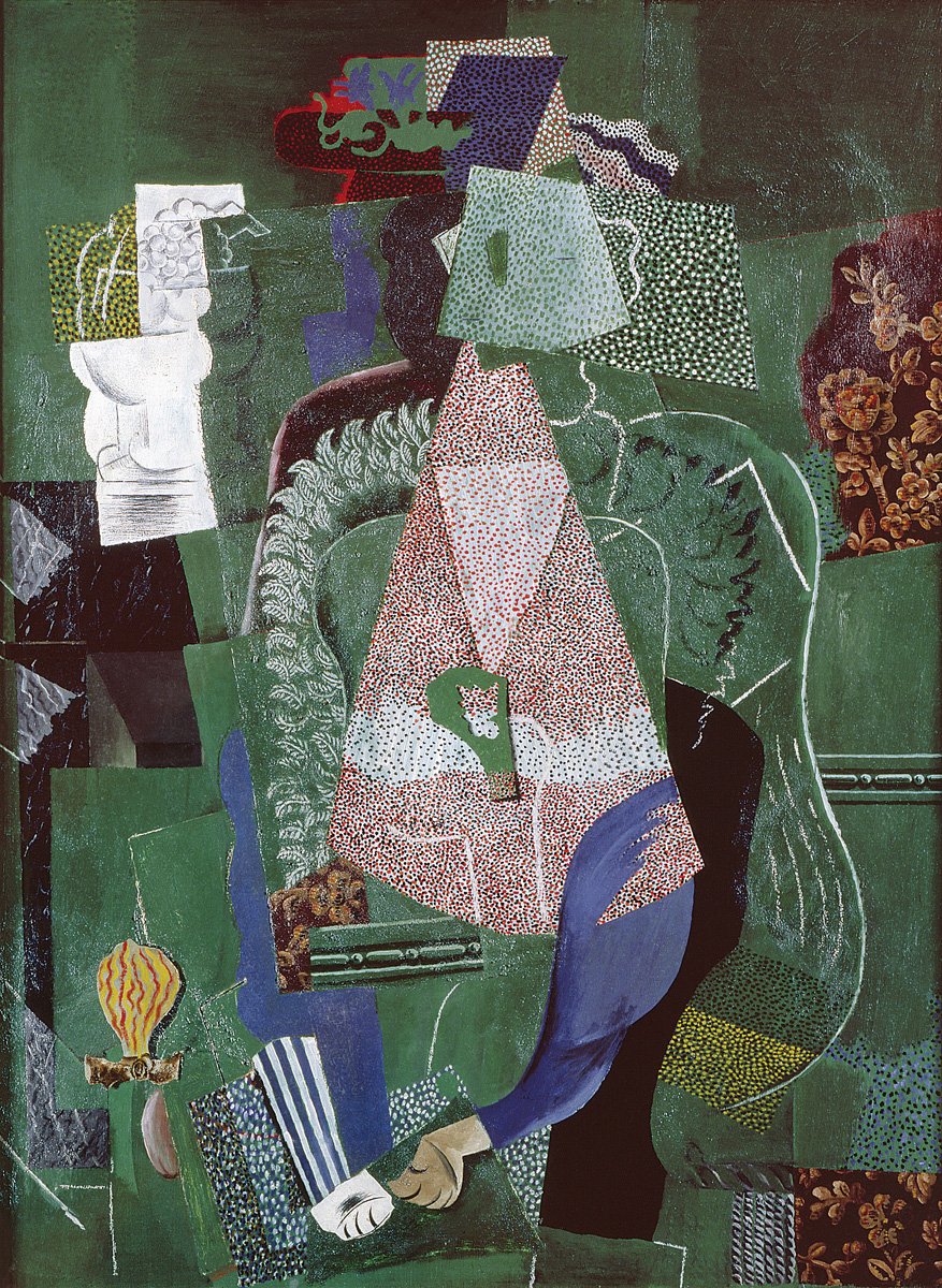 In der Zurückgezogenheit des eigenen Ateliers porträtierte er dann danach seine Erinnerungen, indem er Details mit Hilfe seiner Methode präzisierte. Aus diesem Grund ist der Eindruck der Konkretheit einer Gestalt, der Individualität einer modernen Städterin, eines Modells, den zum Beispiel die Junge Dame hinterlässt, nicht zufällig. Ihren Charakter versteht man umso besser, je länger man sie betrachtet. Aber vom Standpunkt des Kubismus ist dieses Bild nur ein Kettenglied in der Reihe von Studienarbeiten, die zu immer größerer Zersplitterung des gegenständlichen Volumens mittels der Valeurs und der Dissoziation des Volumens in kleine geometrische Flächen, zur Schaffung einer eigenartigen esoterischen Sprache des analytischen Kubismus führen.