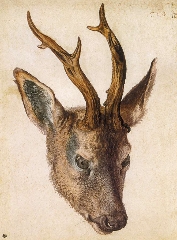 56. Albrecht Dürer, 1471-1528, Allemand. Tête de cerf, vers 1503. Aquarelle, 22,7 x 16 cm. Musée Bonnat, Bayonne. Renaissance du Nord.