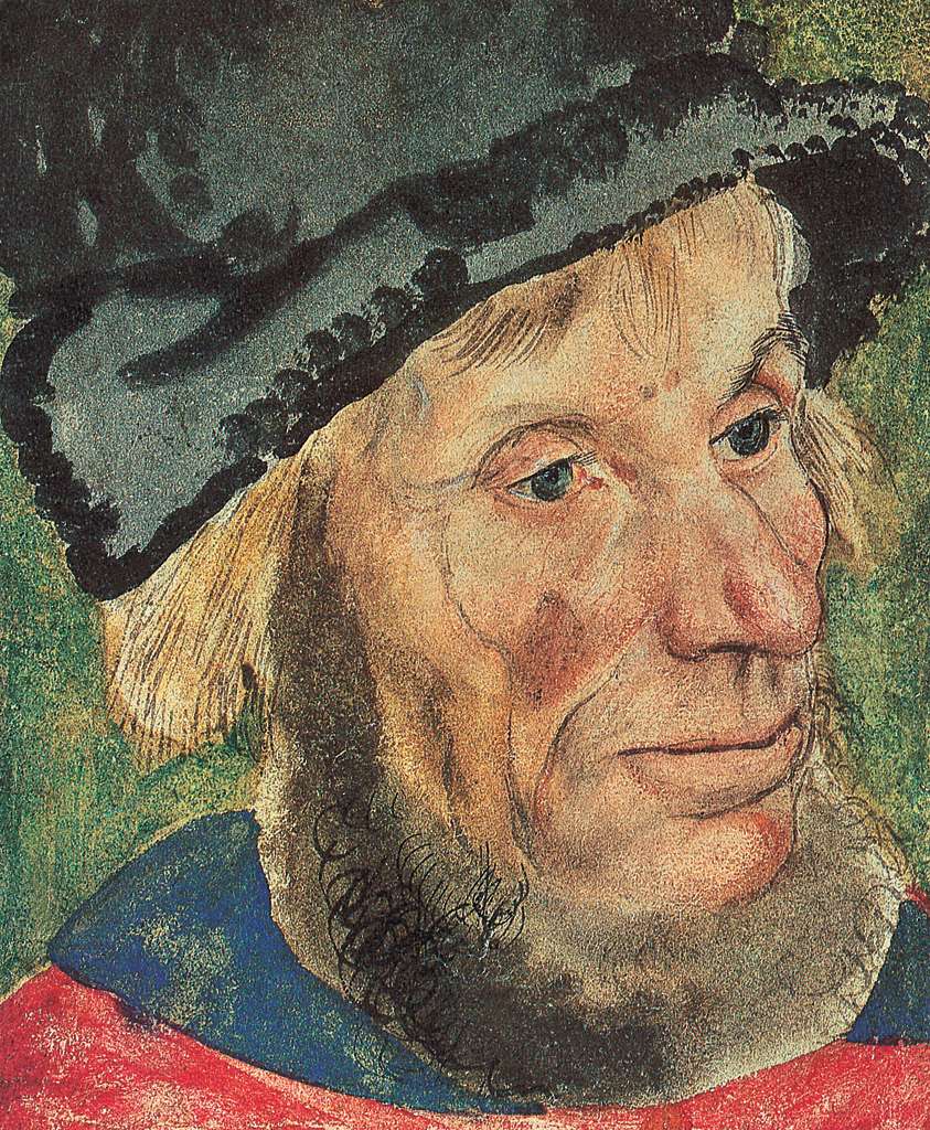 61. Lucas Cranach l’Ancien, 1472-1553, Allemand. Tête d’homme à la toque de fourrure, vers 1505-1506. Aquarelle, 19,3 x 15,7 cm. Kunstmuseum Basel, Bâle. Renaissance du Nord.