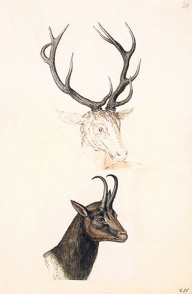 116. Guiseppe Arcimboldo, vers 1527-1593, Italien. Étude d’un cerf et une chèvre, date inconnue. Aquarelle sur parchemin. Österreichische Nationalbibliothek, Vienne. Maniérisme.
