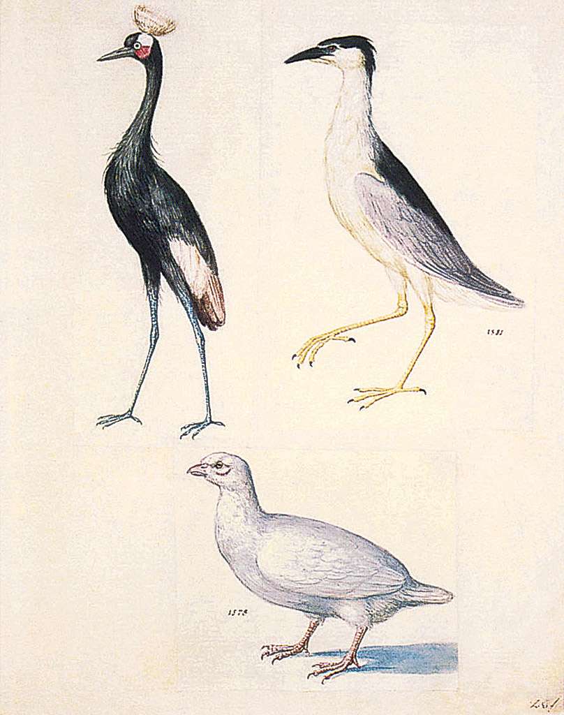 119. Guiseppe Arcimboldo, vers 1527-1593, Italien. Études des oiseaux, 1578. Aquarelle sur parchemin. Österreichische Nationalbibliothek, Vienne. Maniérisme.