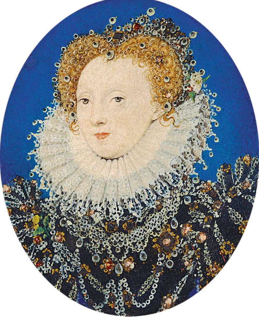 136. Nicholas Hilliard, 1547-1619, Anglais. Élisabeth Ire (1533-1603), vers 1580-1585. Aquarelle sur papier vélin sur papier, 3,8 x 3,3 cm. The Royal Collection, Londres. Renaissance anglaise.