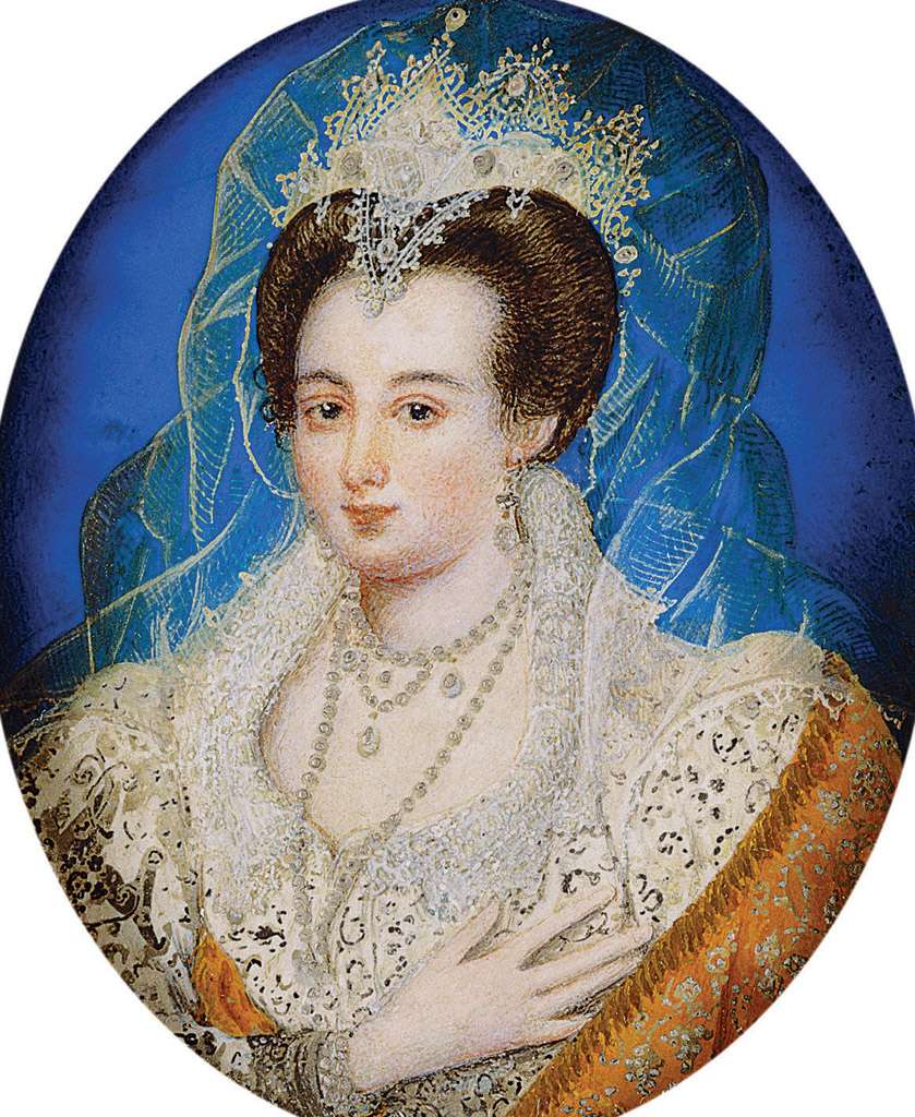 135. Nicholas Hilliard, 1547-1619, Anglais. Marie Stuart (1542-1587), vers 1578-1579. Aquarelle sur papier vélin déposé sur carton, 4,5 x 3,7 cm. The Royal Collection, Londres. Renaissance anglaise.