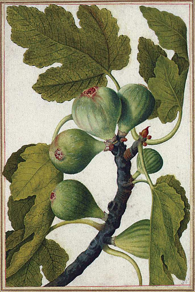 141. Jacques le Moyne de Morgues, 1533-1588, Français. Figues (Ficus carica), vers 1585. Aquarelle et gouache sur papier, 21,5 x 13,9 cm. British Museum, Londres.