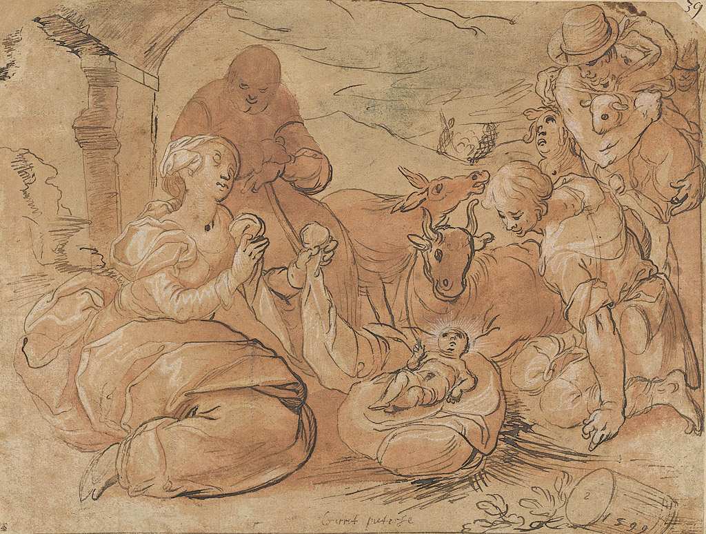 157. Gerrit Pietersz Sweelinck, vers 1566-1612, Néerlandais. L’Adoration des bergers, 1599. Plume et encre brune, lavis brun, rehauts de gouache blanche, 25 x 33 cm. The Metropolitan Museum of Art, New York. Renaissance du Nord.