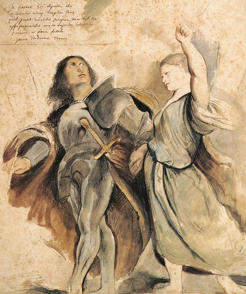 107. Étienne Delaune, 1518-1583, Français. Allégorie de la Religion, date inconnue. Plume, encre brune, aquarelle et rehauts d’or sur vélin, 33,5 x 43,4 cm. Musée du Louvre, Paris. Maniérisme.