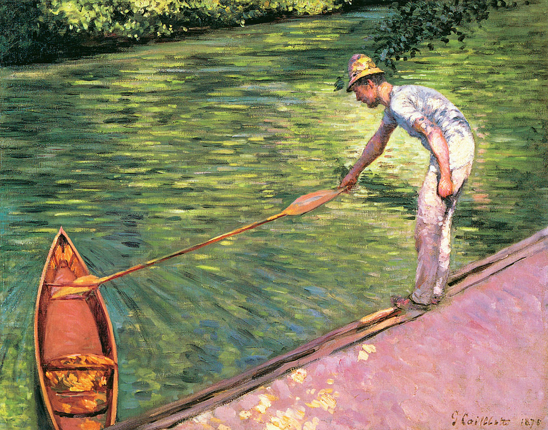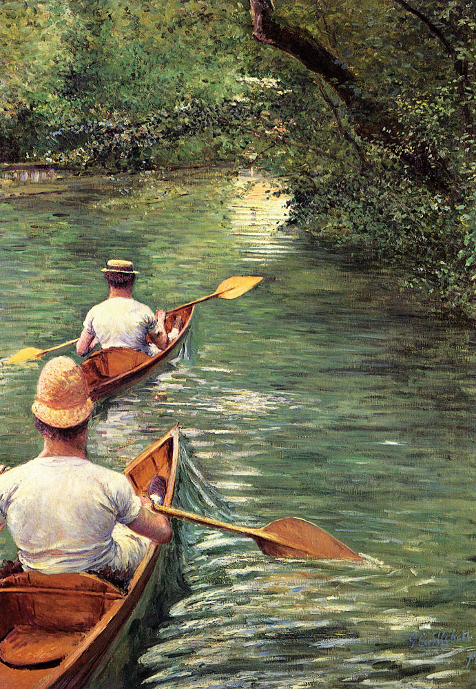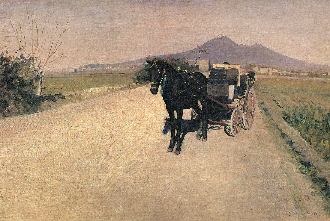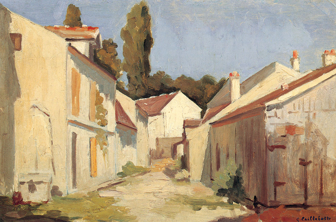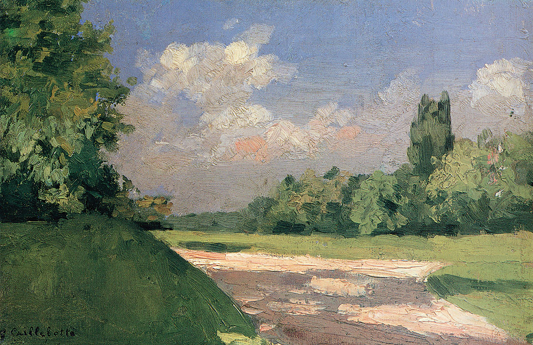 Peu de temps après cette rencontre, émergeaient les premières peintures de Caillebotte, dont Une Route à Naples. La même année, il reçut quelques leçons du peintre français Léon Bonnat, afin de préparer son examen d’entrée à l’École des Beaux-Arts. En 1873, Caillebotte alors âgé de vingt-cinq ans fut reçu, et s’inscrivit à un nombre variés de cours de peinture, mais ne suivit que les cours de dessin enseignés par Adolphe Yvon. Le 25 décembre 1874, le père de l’artiste décède, laissant derrière lui une grande somme d’argent mais également de nombreux biens et immeubles ; fortune qui les laisse à l’abri de toute contingence matérielle. La mère de Caillebotte garde la grande propriété familiale d’Yerres, aujourd’hui accessible au public. Les environs pittoresques d’Yerres et tout particulièrement les berges de la rivière, seront une source d’inspiration pour ses peintures.