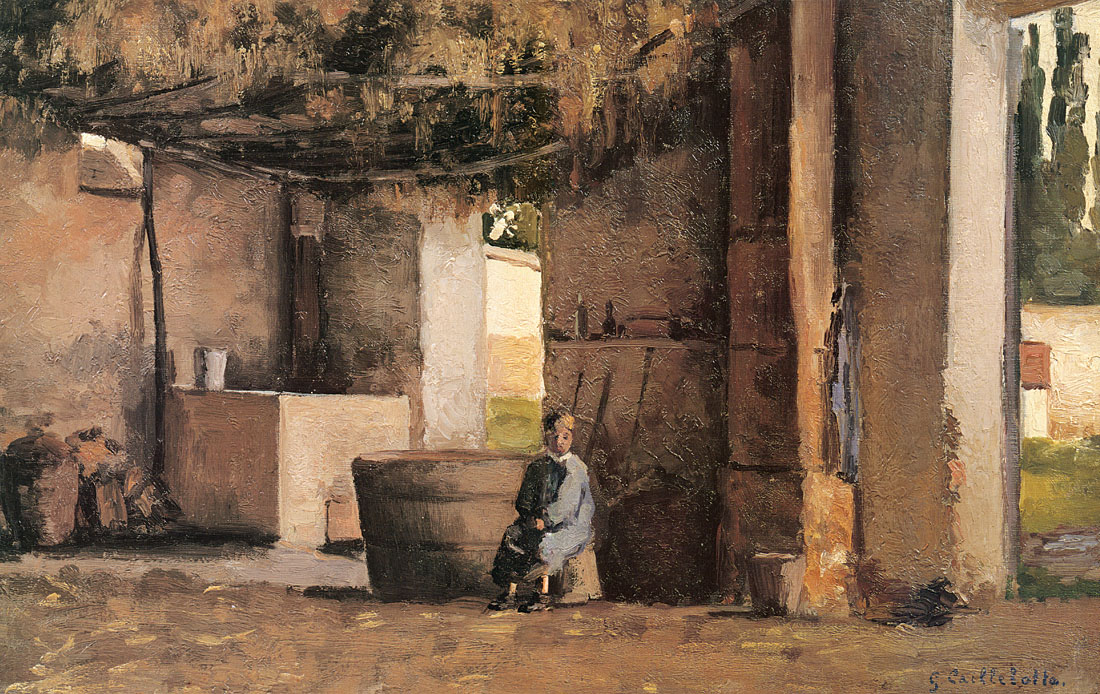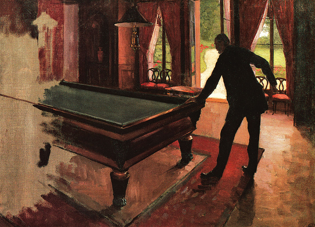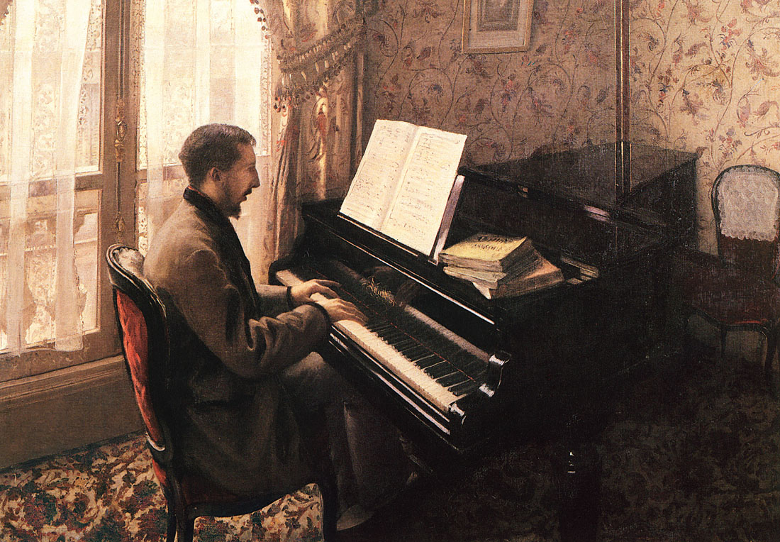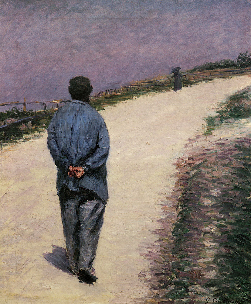 Peu de temps après cette rencontre, émergeaient les premières peintures de Caillebotte, dont Une Route à Naples. La même année, il reçut quelques leçons du peintre français Léon Bonnat, afin de préparer son examen d’entrée à l’École des Beaux-Arts. En 1873, Caillebotte alors âgé de vingt-cinq ans fut reçu, et s’inscrivit à un nombre variés de cours de peinture, mais ne suivit que les cours de dessin enseignés par Adolphe Yvon. Le 25 décembre 1874, le père de l’artiste décède, laissant derrière lui une grande somme d’argent mais également de nombreux biens et immeubles ; fortune qui les laisse à l’abri de toute contingence matérielle. La mère de Caillebotte garde la grande propriété familiale d’Yerres, aujourd’hui accessible au public. Les environs pittoresques d’Yerres et tout particulièrement les berges de la rivière, seront une source d’inspiration pour ses peintures.