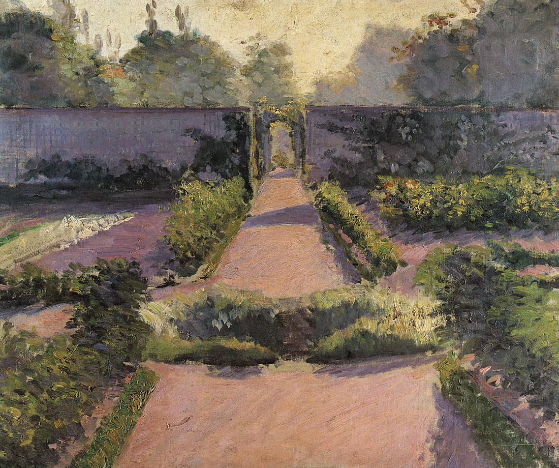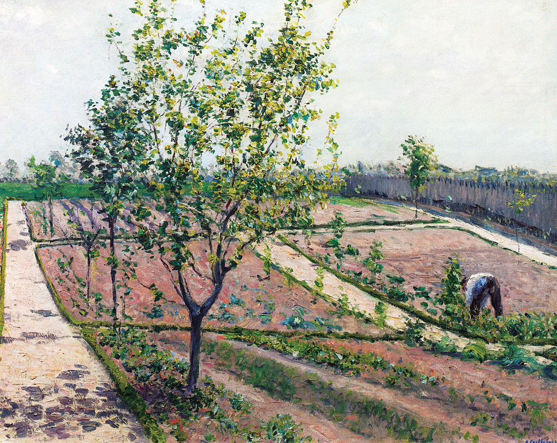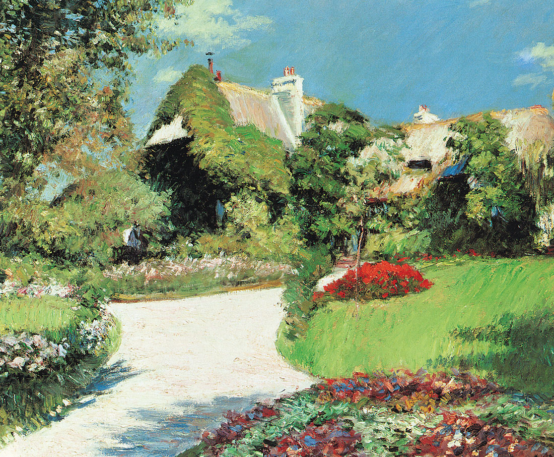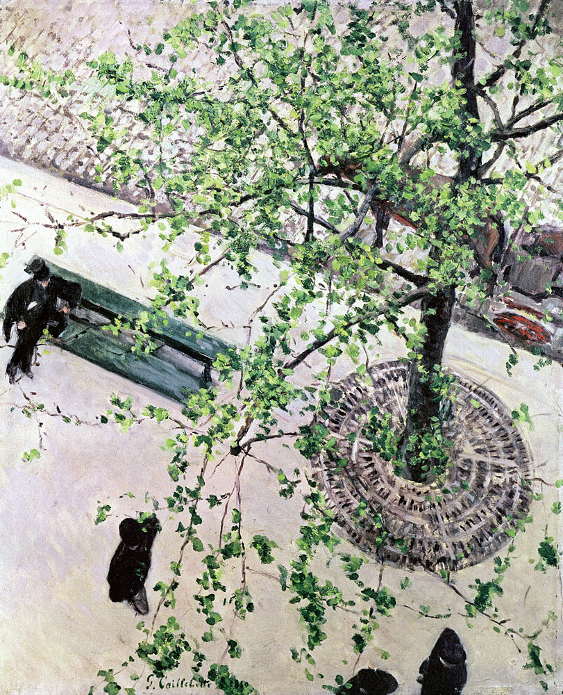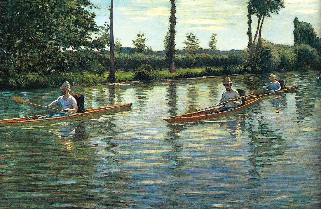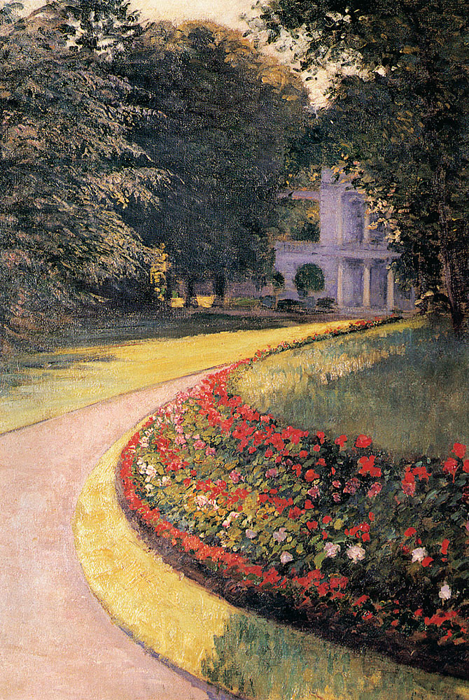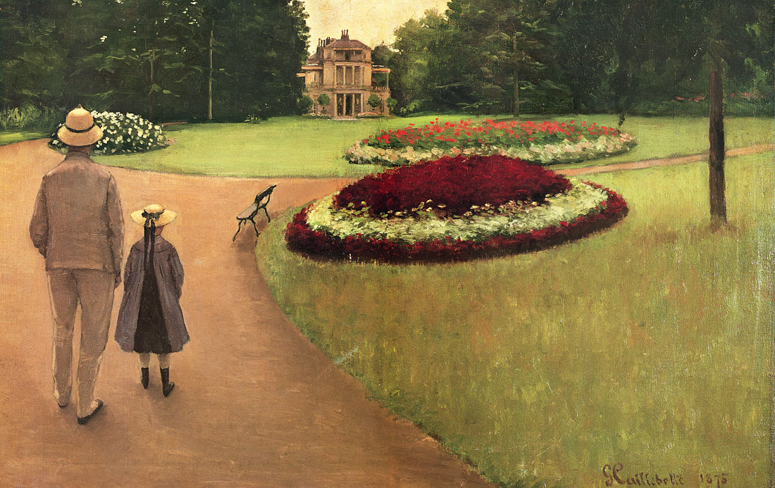 Caillebotte choisit de se concentrer sur les jardins et les paysages, les reflets de la lumière sur l’eau avec les pédalos et les voiliers, sur le nouvel urbanisme parisien entreprit par l’architecte Georges-Eugène Haussmann (1809-1891), où des piétons élégamment habillés déambulent sur les nouveaux boulevards parisiens, et d’autres scènes de la vie courtoise et citadine de son temps.