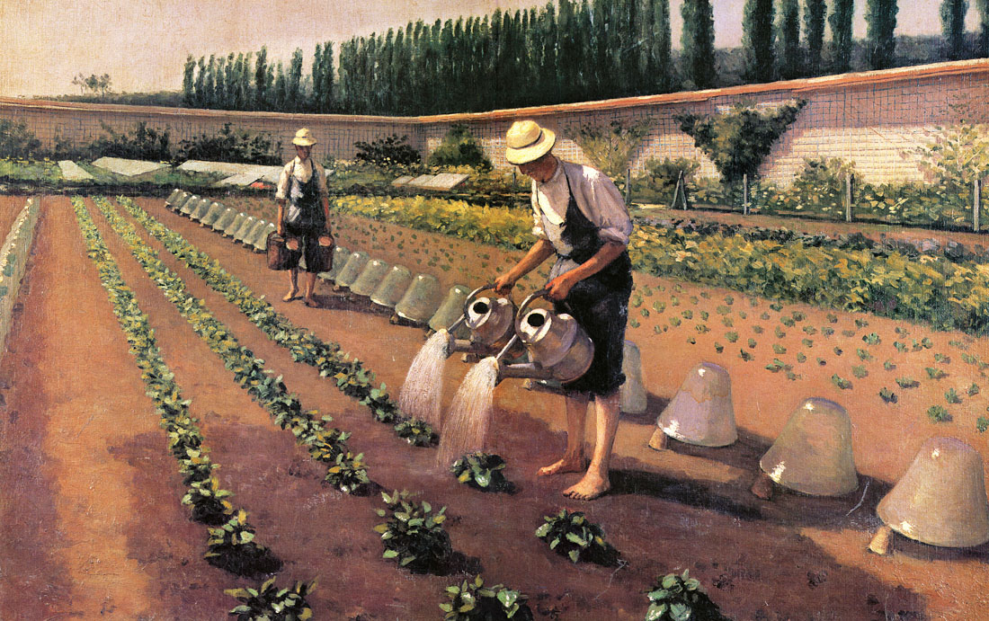 Yerres – Au jardin potager : jardiniers distribuant l’eau aux plantes, ou Les Jardiniers, vers 1875-1877