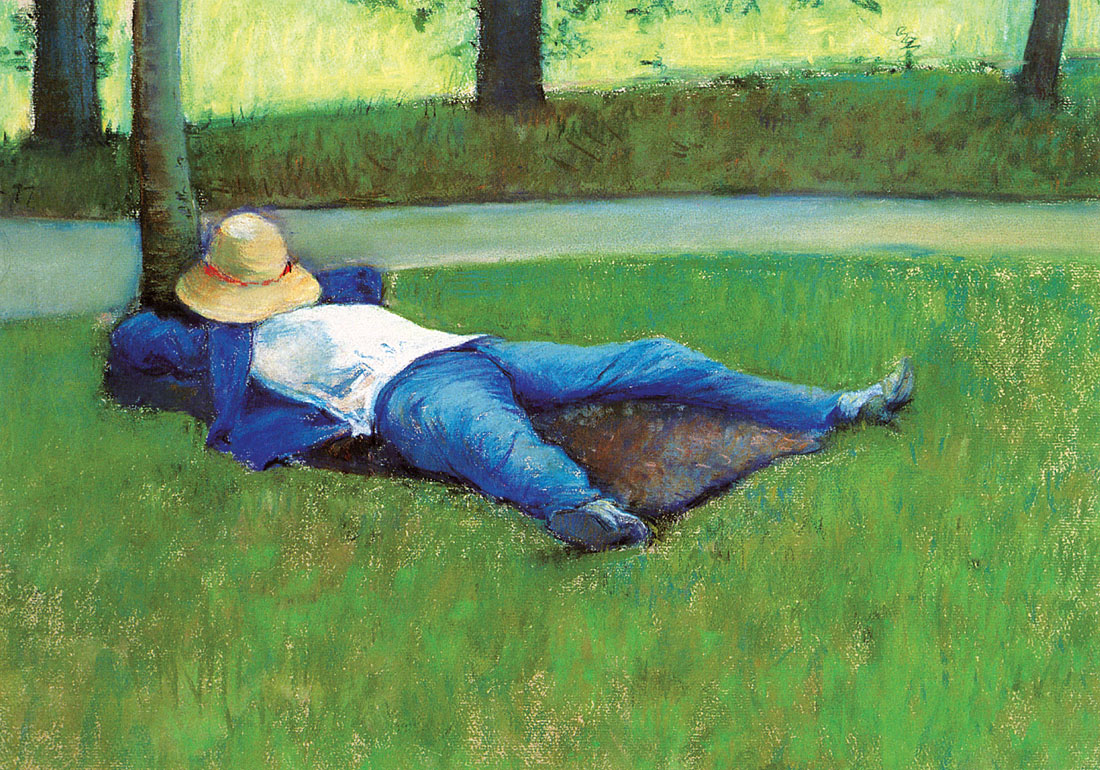 Gustave Caillebotte, né le 19 août 1848, fut l’aîné des trois fils d’un marchand de textiles, juge et grand propriétaire immobilier, deux fois veuf, Martial Caillebotte, et de sa troisième femme Céleste Daufresne à Paris, où il grandit dans la haute bourgeoisie. Le niveau de vie aisé de sa famille se reflète dans un grand nombre de ses peintures, ainsi que la vie des quartiers bourgeois proches de Paris et les nombreuses pérégrinations de sa famille à Yerres. À la fin de ses études au lycée public Louis-le-Grand à Vanves, Caillebotte entame des études de droit. Après une brève mobilisation lors de guerre franco-prussienne (1870-1871), il participe à la défense de Paris dans la Garde Mobile. Mais grâce au soutien financier de sa famille, il se retira temporairement afin de préparer son diplôme de licence de droit qu’il obtint avec succès en juillet 1870. En 1872, il accompagna son père en voyage en Italie durant lequel il rendit visite au peintre Giuseppe de Nittis à Naples.