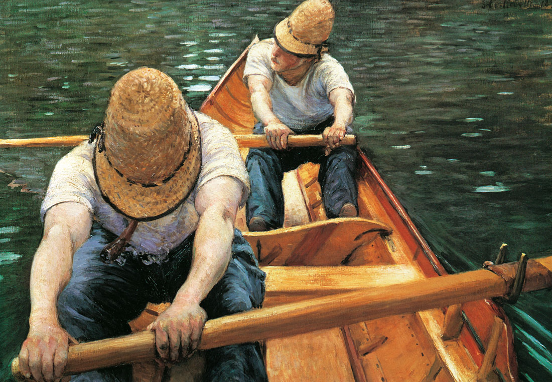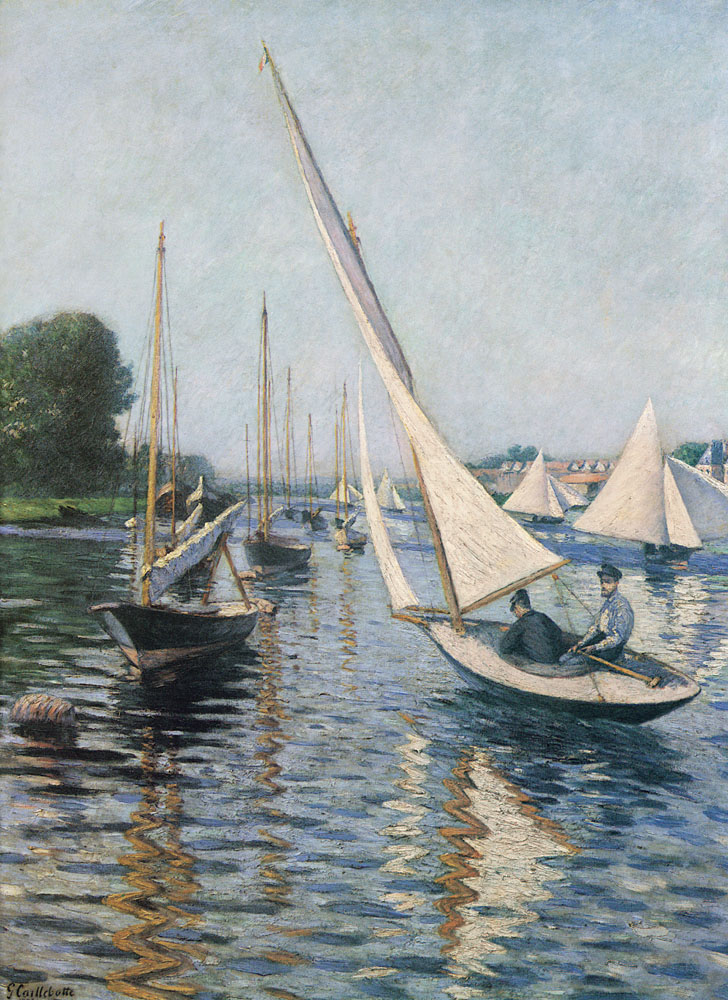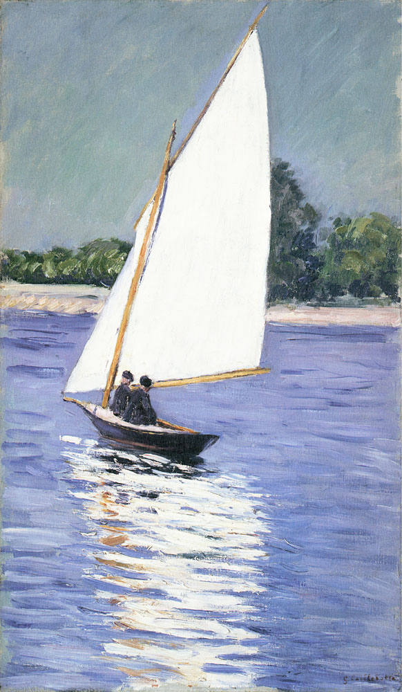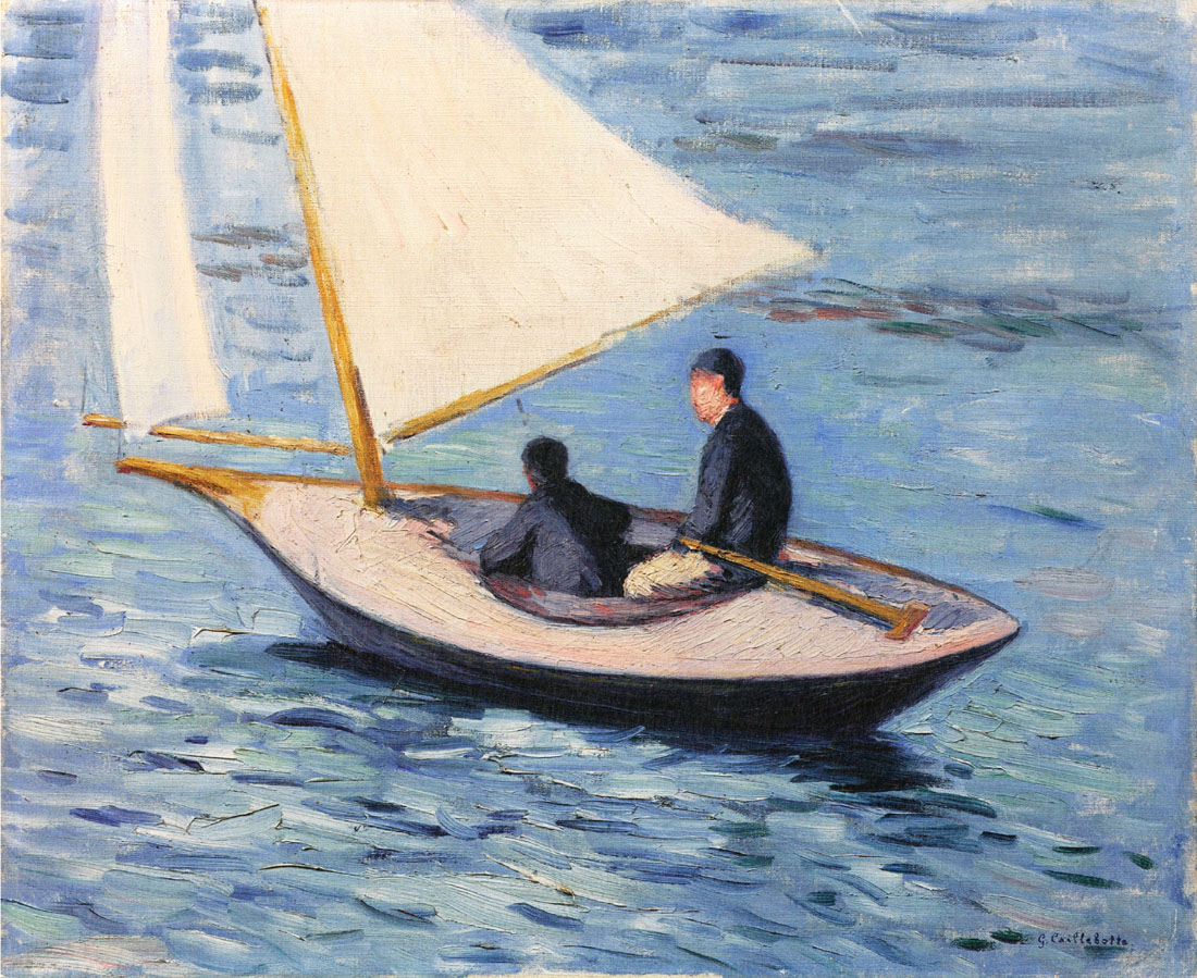 En plus de l’art, Caillebotte partage une autre passion avec son frère cadet, Martial Caillebotte : ils sont tous deux membres du club parisien de voiles le Cercle de la Voile de Paris. Il s’enquiert de nombreuses frégates et il rédige, après avoir reçu le titre de vice-président du club après quatre ans d’adhésion en 1880, les premières réglementations internationales pour le pari de la voile. Sa passion pour les sports nautiques, et tout particulièrement pour la voile que l’on retrouve dans plusieurs tableaux, était si forte qu’il entreprit la construction de bateaux et, en 1885, il fonda sa propre entreprise sous le nom de « Chantier naval de Luce ». Au total, vingt et un yachts seront fabriqués d’après les plans de Caillebotte, et à cette époque, son chantier était considéré comme le plus moderne chantier naval d’Europe. En 1887, après le mariage de son plus jeune frère, Caillebotte quitte l’appartement conjoin-tement habité et déménage dans sa maison de campagne au Petit Gennevilliers, dont les paysages inspirent ses peintures. Pendant qu’il travaille sur la peinture d’un paysage dans son jardin de Gennevilliers, l’artiste a une attaque cérébrale. Caillebotte décède à l’âge de quarante-cinq ans le 21 février 1894. Grâce à l’héritage légué par son père, l’artiste était l’un des principaux soutiens financiers du mouvement français impressionniste. En 1874, Caillebotte aida ses camarades d’études Edgar Degas, Claude Monet et Pierre Auguste Renoir à organiser la première exposition du groupe impressionniste à Paris qui ouvrira ses portes la même année. En 1876 et les années suivantes (1877, 1879, 1880 et 1892), il organisa et finança les expositions du groupe.