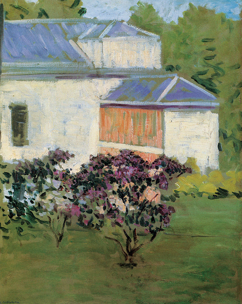 Le Petit Gennevilliers ; la facade au sud-est de l’atelier de l’artiste sur le jardin au printemps