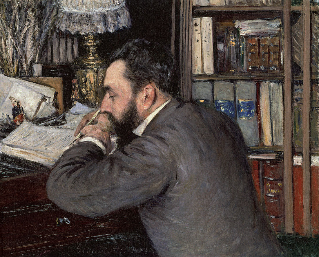 Émile Zola (1840-1902), qui prendra le parti des impressionnistes vilipendés par la critique et refusés par le jury du Salon, sera critique à l’égard de Caillebotte dont il dénoncera le réalisme photographique lors de la deuxième exposition impressionniste. Le peintre présentera les huit toiles suivantes : Les Raboteurs de parquet, Jeune Homme jouant au piano, Jeune Homme à sa fenêtre, Déjeuner, Après Déjeuner et Deux Jardins. Zola commentera ainsi le talent de Caillebotte dans ses « Lettres de Paris » de juin 1876 :