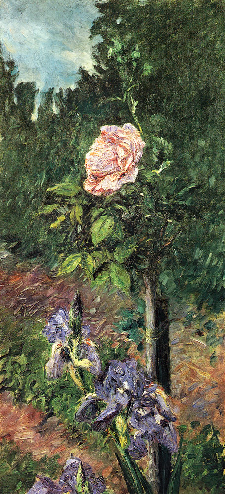 Rosiers et iris mauve, jardin du Petit Gennevilliers, vers 1892