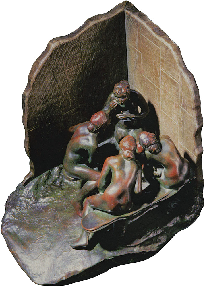 Bronze mit Wand, Guss Eugène Blot (1905). Die Wand ist verschollen