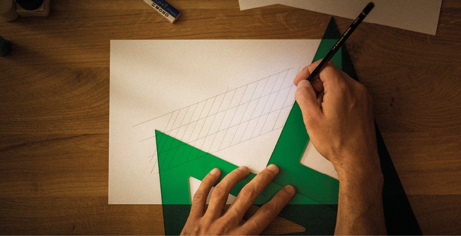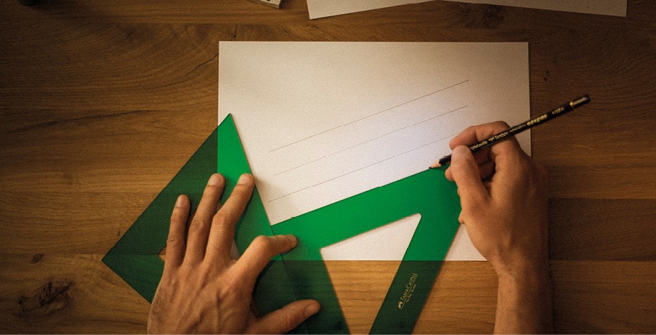 Con ayuda de la escuadra y el cartabón, traza líneas de arriba a abajo, siempre con la misma distancia y hasta que sea necesario, mejor que sobre que no que falte.