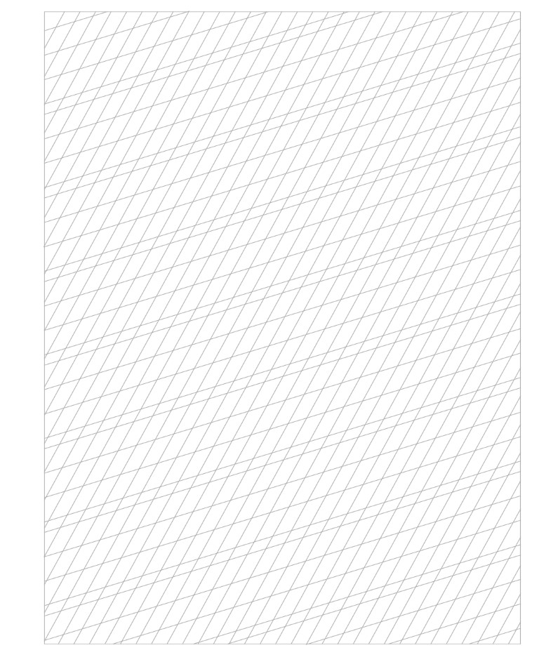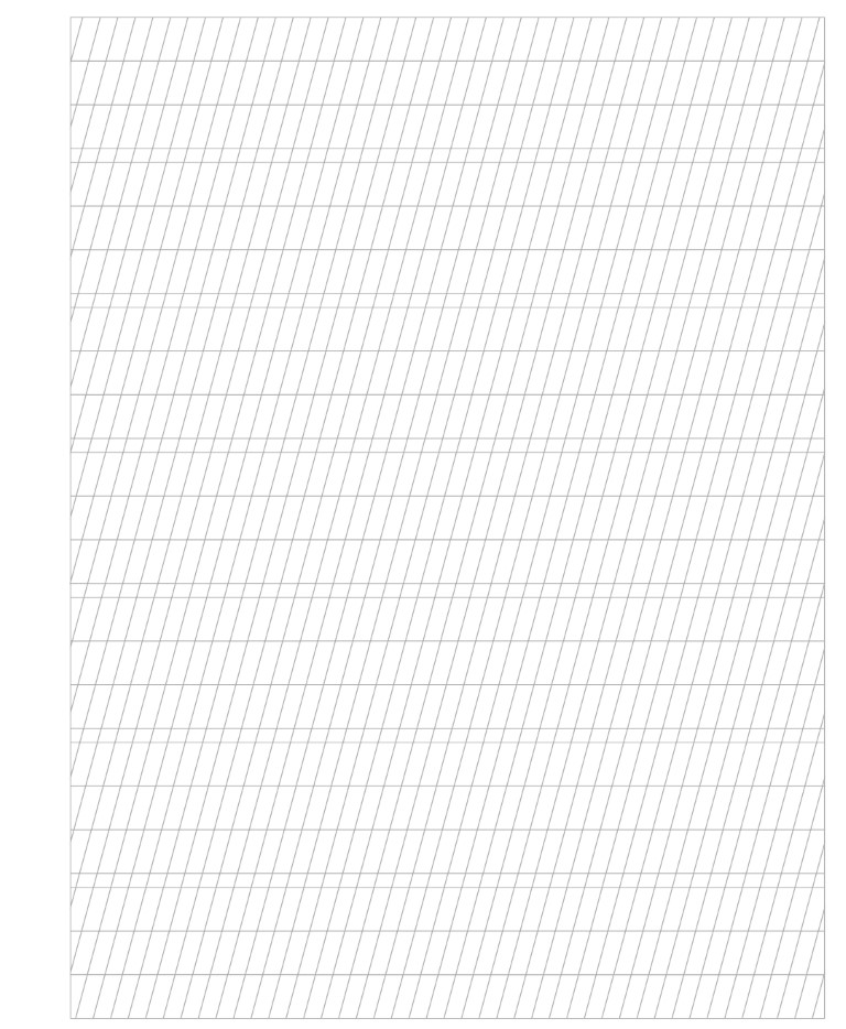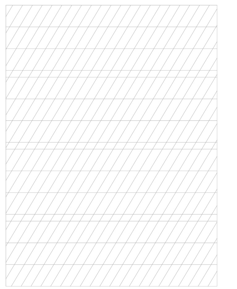 5. Inclinación Estas líneas inclinadas atraviesan en diagonal toda la pauta de izquierda a derecha con un ángulo constante. Están ahí para ayudarte a mantener una inclinación continuada durante todo el texto.