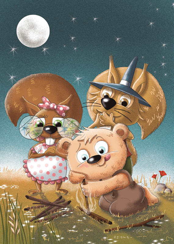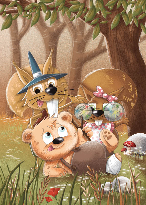 Osito color canela despertaba y no creía que fuera cierto lo que lejanamente oía, pero menos lo que sus ojos al abrirse observaron… Dos ardillas aún pequeñas que sin parar hablaban, una de ellas con sombrero puntiagudo, flaca y de dientes largos, la otra con unas gafas grandes, coloridas como el arcoíris y cierto aire de intelectual. Aquellas ardillas empezaron a sentir sentimientos encontrados cuando advirtieron que Osito despertaba, de alivio y de miedo a su vez, al no saber si los ayudaría o los devoraría.