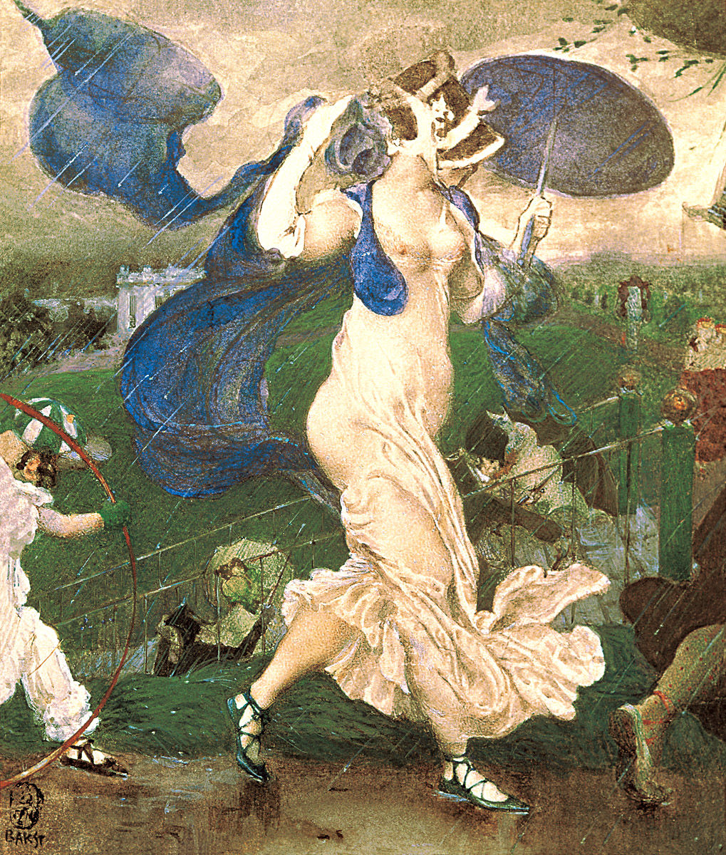 Léon Bakst, Downpour, 1906. Gouache and indian ink on paper, 15.9 x 13.3 cm. Russian Museum, St Petersburg.