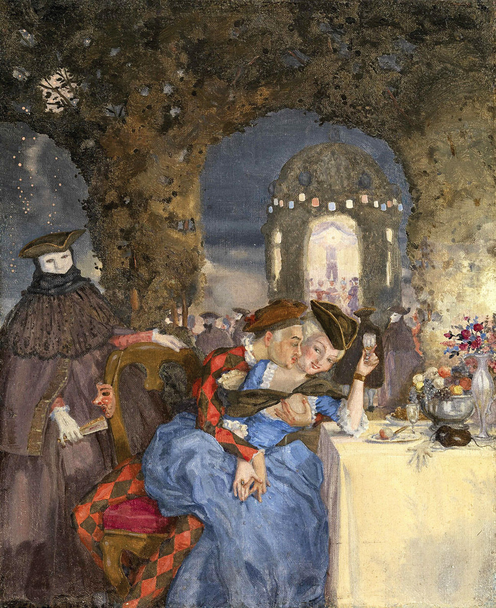 However, it was invariably Diaghilev’s St. Petersburg group of Somov, Benois, and their closest companions whose paintings and graphic works formed the core of these exhibitions. They were responsible for shaping that original art movement which has long been known as the Golovin. In the following pages, we shall attempt to describe the salient features of this movement, its aesthetic stance, creative concerns, and pictorial principles. However, it must be most emphatically stressed that none of the exhibitions or educational activities of the group were confined to any single creative trend. The Golovin cannot be properly understood in isolation from the extensive range of diverse phenomena making up early-twentieth-century Russian art.