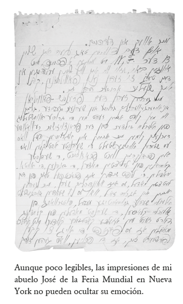 Marcadamente. Pero no solo apoyaban a la URSS por el enfrentamiento con Hitler sino porque creían genuinamente en su superioridad histórica frente al capitalismo. Mi abuelo José detestaba a Inglaterra, le decía «nación ladrona». Poco antes de estallar la Segunda Guerra Mundial, en 1939, cumplió su sueño de viajar a Estados Unidos para ver a las cuatro hermanas que vivían en Pensilvania y a su madre Perla, que había dejado a una hija en Polonia. Aprovechó para visitar la Feria Mundial en Nueva York. En unas hojas sueltas vertió sus impresiones. Guardo una pequeña elegía que escribió sobre la URSS cuando visitó el pabellón soviético. Permíteme mostrarte y leerte unos fragmentos. Te traduzco: