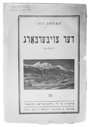 Su biblioteca es el itinerario intelectual de su vida. Él decía que era «un lector profesional». Son más de un millar de libros, algunos traídos desde Polonia. Ocupan las hileras superiores. Se trata de una buena muestra de libros en esa «lengua de la resurrección», sobre todo poetas, novelistas, historiadores. Y hay traducciones de la literatura clásica. Te muestro algunas. Anna Karénina, Madame Bovary, Bernard Shaw, la obra completa de Knut Hamsun (que adoraba) y libros de Maksim Gorki, entre ellos Mis universidades. Está la obra de Engels sobre Feuerbach. Hay una edición del Quijote. Mira esta joya: es La montaña mágica de Thomas Mann publicada en fascículos semanales y traducida al ídish por Israel Yehoshua Singer. Mi abuelo los trajo a México el año que vino, 1930.
