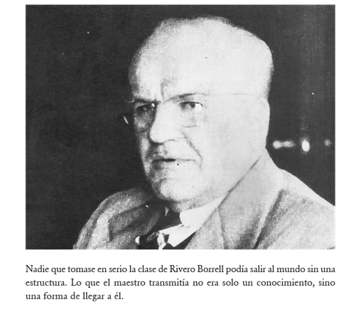 La mayoría trabajaba en la industria y daba clases por amor a la docencia. Y se notaba por el entusiasmo con que las impartían. Unos pocos pertenecían como investigadores al Instituto de Ingeniería de la UNAM. Entre todos los maestros sobresalía el de matemáticas, Enrique Rivero Borrell. Tendría sesenta años pero lo recuerdo mayor, vestía siempre de traje beige claro, era de trato pulcro y caballeroso. Impartía su cátedra de pie, con voz pausada y suave. Nunca faltó a su clase. Con impecable letra Palmer, desarrollaba sus temas en el pizarrón –o, mejor dicho, los dibujaba– sin voltear la mirada a su público. Así recuerdo que nos explicó la teoría de conjuntos. Nos fascinaba la claridad y el rigor con que el maestro nos guiaba para entender desde su esencia –no memorizar mecánicamente– los conceptos. Al final, contemplaba con orgullo aquel efímero mural de números, signos y fórmulas del que tampoco nosotros podíamos desprender la mirada. Por cierto, nunca hizo exámenes, solo invitaba a los alumnos a pasar al pizarrón e intervenir, y al concluir el curso calificó a cada quien con justicia. Digamos que don Enrique era la cota más alta a la que muchos profesores aspiraban. En suma, aquella facultad me dejó amigos queridos y enseñanzas. Los cursos de ingeniería industrial fueron particularmente útiles: con sus «teorías de colas», «tiempos y movimientos» y otros temas, formaban en el alumno la práctica de ensayar soluciones, de ver las cosas de otro modo.