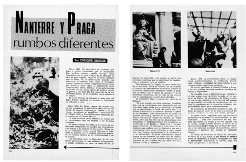 Fue una defensa de la libertad en el orbe socialista. Apareció en febrero de 1969. Había seguido desde sus inicios la «Primavera de Praga», por eso me indignó la invasión soviética y el apoyo inmediato que le dio Fidel Castro a la represión de aquel promisorio «socialismo con rostro humano». Así que, al enterarme de la inmolación del estudiante checo Jan Palach en protesta contra la ocupación rusa, publiqué un artículo que vinculaba el espíritu libertario de un típico joven francés en 1968 con el sacrificio libertario de Palach. Era el testimonio de una frustración. Y un acto de fe en la libertad. ¿Había sido un sueño la rebeldía libertaria del 68? Los jóvenes aguardaríamos una nueva oportunidad. Yo no desesperaba de la posibilidad de un socialismo libertario en Occidente. Pero justamente por eso me parecía tan injustificable la invasión rusa. Para mí Checoslovaquia ya era socialista y solo necesitaba abrir puertas a la libertad. ¿No había escrito Marcuse que los jóvenes de Praga eran «ya libres para su liberación»? Checoslovaquia –creía yo– había «emancipado al hombre del determinismo económico creando el socialismo democrático verdadero…». En ese artículo transcribí una cita de Jan Palach, citando a Bakunin, citando a su vez a Proudhon: