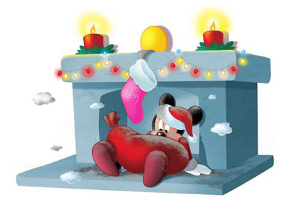 —Vaya, ¿cómo se supone que debo entrar? —preguntó Mickey, echándose el saco al hombro—. Papá Noel baja por la chimenea, así que tendré que probar, ¿no?