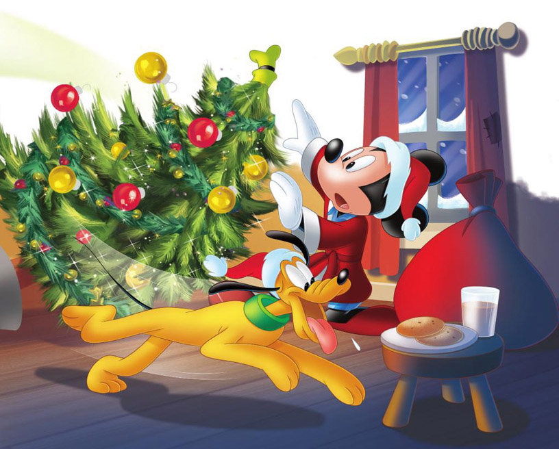 Era la víspera de Navidad y todo estaba muy tranquilo. Mickey y Pluto dormían profundamente cuando…