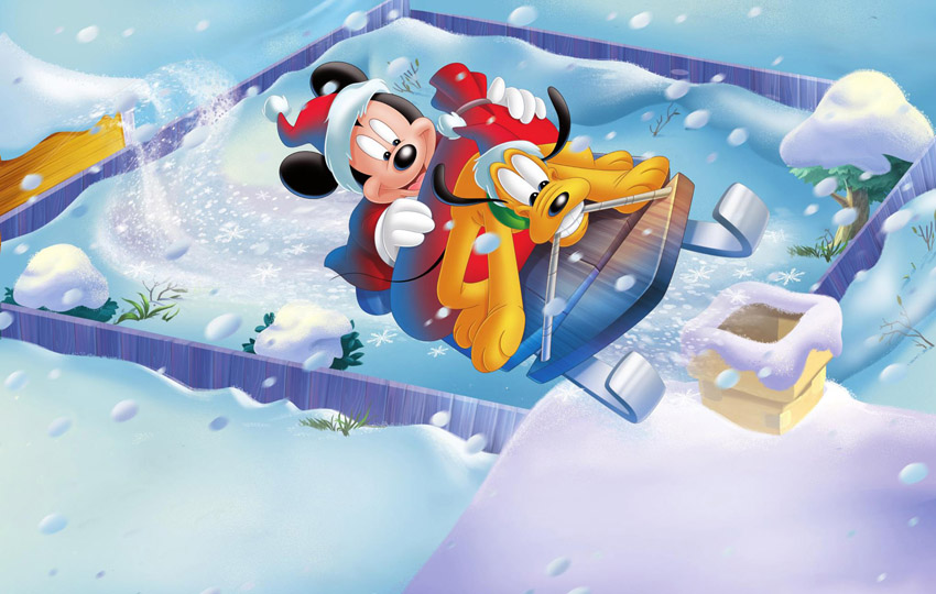Mickey y Pluto tenían que darse prisa. Habían tardado mucho en arreglar el árbol de Goofy, así que se les acababa el tiempo para repartir el resto de los regalos de Papá Noel.