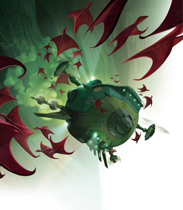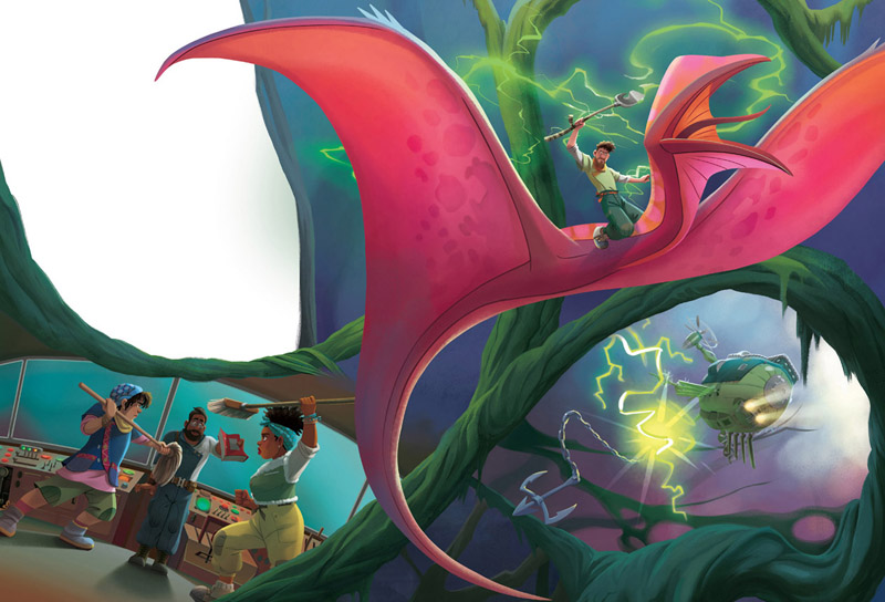 Ethan no dudó ni un segundo. Con Splat sobre sus hombros, saltó de la Venture y cayó sobre el lomo de una criatura voladora.