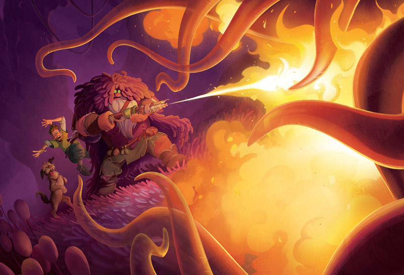 El extraño ser gelatinoso los llevó hasta una bestia terrorífica con tentáculos. El monstruo abrió la boca y se abalanzó sobre Searcher.