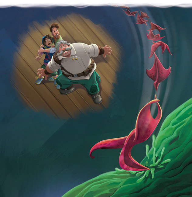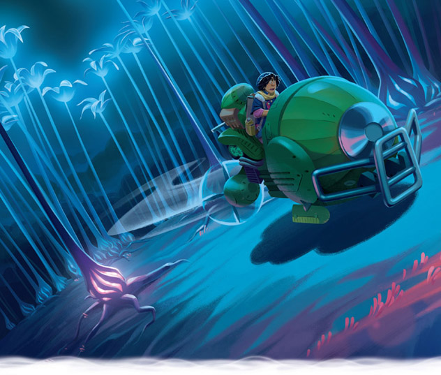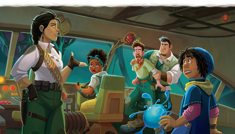 ¡Blop! Para sorpresa de todos, la Venture atravesó el suelo y fue a parar a un extraño mundo subterráneo.