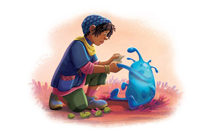 De pronto, un pequeño ser gelatinoso le arrebató a Searcher su pañuelo y se fue rápidamente.