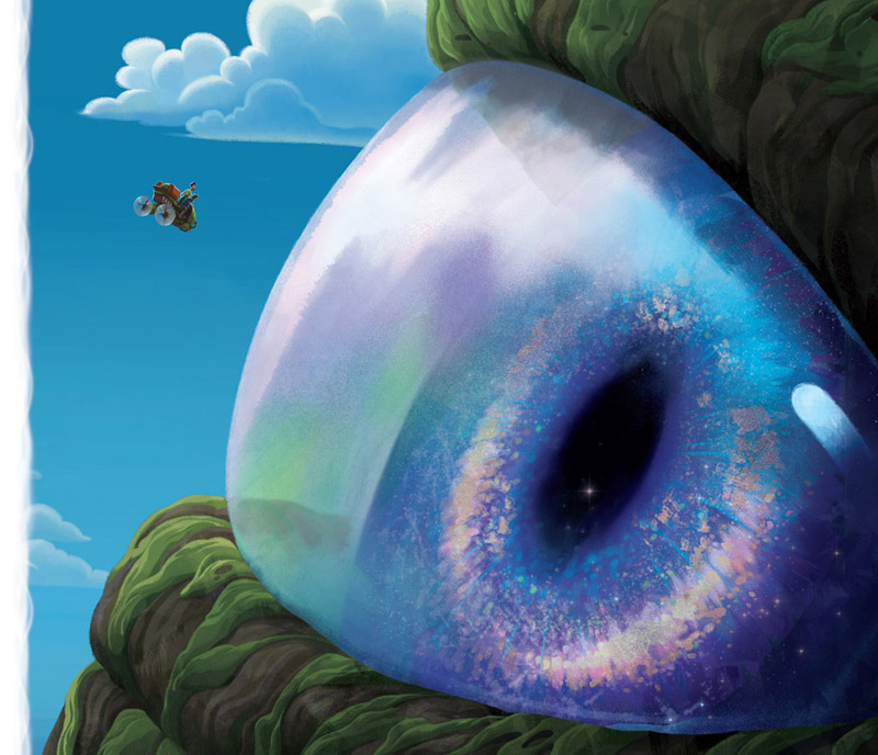 Un fuerte estruendo hizo temblar el mundo y, de pronto, la tierra se abrió y dejó al descubierto… ¡un ojo gigante que los miraba fijamente!