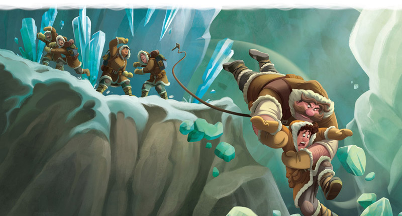 Rápidamente, Jaeger fijó un ancla en la nieve, se agarró con firmeza a su cuerda y se dejó caer por el abismo. ¡Alcanzó a Searcher justo a tiempo!