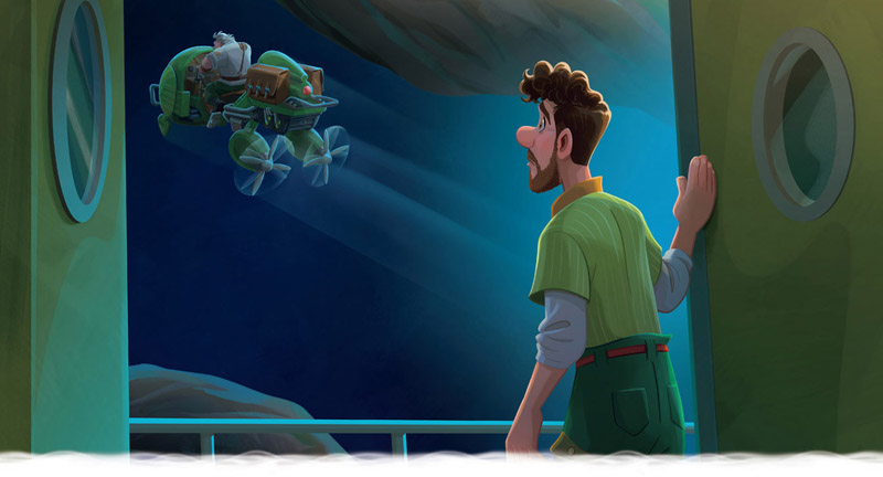 Pero Jaeger había tomado una decisión. Quería ver con sus propios ojos lo que había al otro lado de las montañas. Sin decir nada más, Jaeger se montó en un esquife y se fue volando.