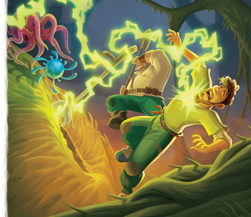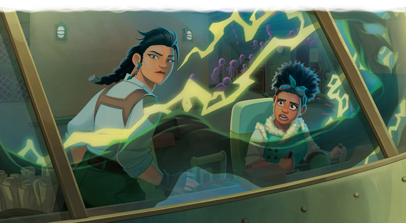 Abajo, en medio de la oscuridad, las raíces del pando titilaban y chispeaban cargadas de electricidad. Mientras Searcher y Callisto las admiraban, un ruido les hizo alzar la vista. ¡Era la avioneta fumigadora de Meridian!