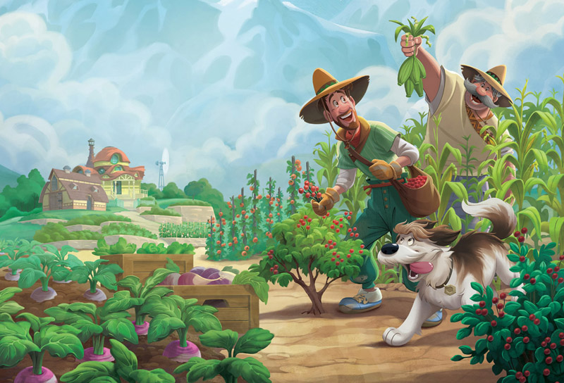 Las granjas Clade también experimentaron muchos cambios. En vez de pando, ahora la familia cultivaba bayas y hortalizas. Jaeger también emprendió nuevas aventuras: aprender a labrar y a cosechar las elevadas mazorcas de maíz.