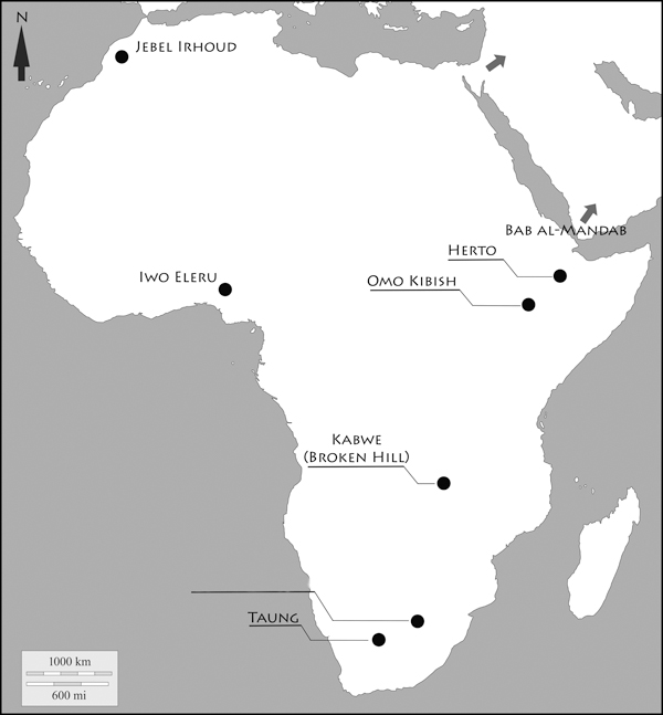 También ha resultado difícil identificar al grupo o la subpoblación concreta dentro de África que acabaría convirtiéndose en el ancestro de todos los humanos fuera de ese continente, y es poco probable que lleguemos a saber quiénes fueron. Una vez más parece verosímil que se produjera flujo genético, movimientos poblacionales y mezclas entre grupos por amplias zonas de África a lo largo del tiempo. Como veremos en repetidas ocasiones a lo largo de este libro, el panorama se complica aún más por la alta probabilidad de que esta diversidad de grupos humanos se magnificara por la presencia de otros tipos de humanos en África. Nosotros, Homo sapiens, no estábamos solos en el continente.