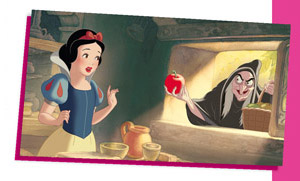 Los siete enanitos decidieron proteger a la princesa, y, para darles las gracias, la joven Blancanieves les preparó una cena deliciosa. No obstante, les puso como condición que, antes de sentarse a cenar, tenían que lavarse muy bien las manos. Bailaron y cantaron hasta casi la medianoche, ¡se lo pasaron en grande! Por desgracia, en el castillo, la malvada madrastra se enteró por casualidad de que la princesa Blancanieves se escondía en la casa de los siete enanitos. Furiosa porque el cazador no había matado a su hijastra, la reina se encerró en su laboratorio secreto. Allí usó la magia negra para convertirse en una anciana; envenenó una sabrosa manzana y, por la mañana, emprendió el camino para llegar a la cabaña de los enanitos. Cuando los siete enanitos se marcharon a trabajar a la mina de diamantes, la malvada bruja fue a ver a Blancanieves y se hizo pasar por una dulce viejecita.