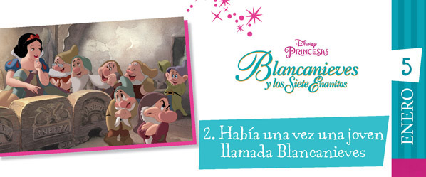 Para salvarse de la envidia de la reina, la princesa Blancanieves se refugió en una agradable cabaña en el bosque. Mientras esperaba el regreso de los habitantes de su nuevo hogar, la joven juntó las siete camitas que encontró, se recostó sobre ellas y se quedó dormida. Cuando despertó, Blancanieves se sorprendió al descubrir que había ido a parar a la casa de los siete enanitos: Sabio, Tímido, Dormilón, Mocoso, Bonachón, Mudito y Gruñón. Los enanitos también se quedaron pasmados cuando, tras volver de la mina de diamantes, ¡se encontraron con una bella princesa dormida en su habitación! Gruñón quería echarla, pero la princesa Blancanieves les suplicó: